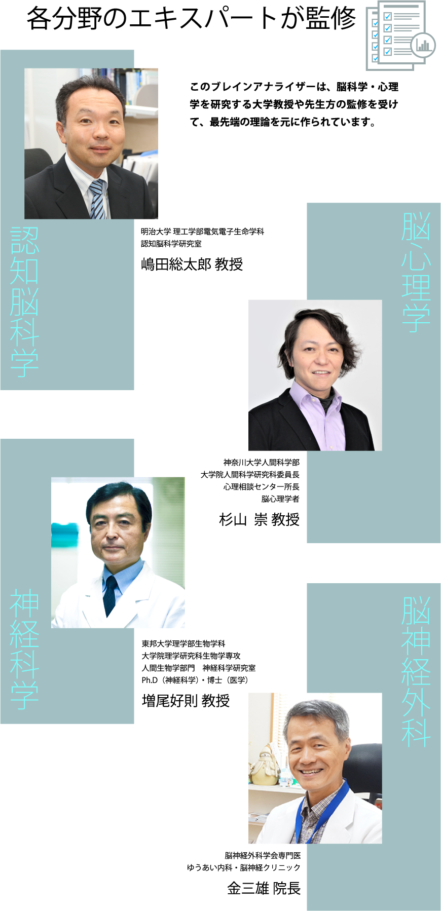 ウェブ脳解析は、「〇〇タイプ」という曖昧な表現ではなく、学術的に監修された数値で示されているため、一目瞭然です。